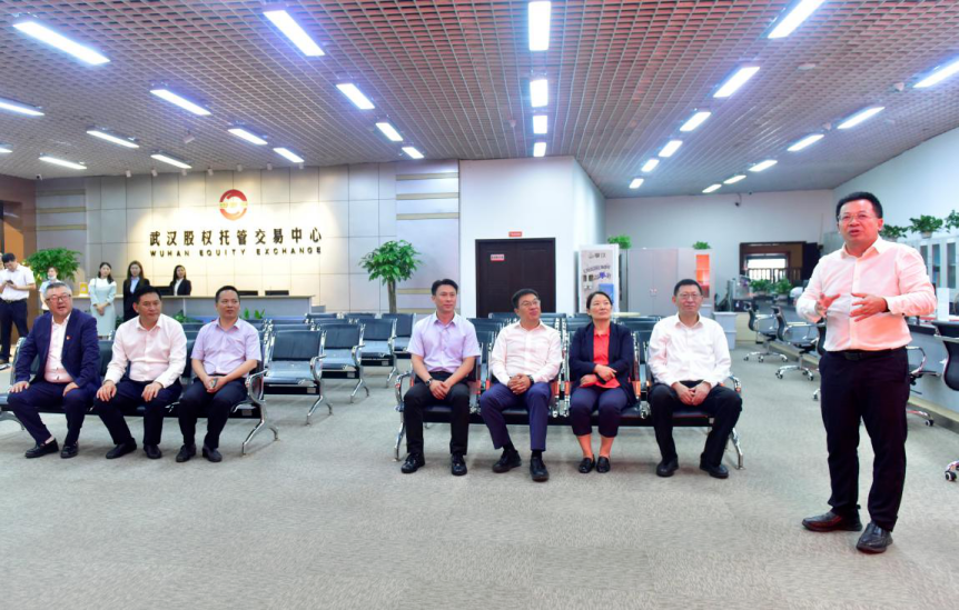 尉立東一行在武漢光谷聯合產權交易所黨委書記、董事長曾慶祝,光谷聯交所副總經理兼總法律顧問、武交中心董事長、全聯并購公會常務理事龔波,武交中心總經理張京念等的陪同下,先后參觀了光谷資本大廈一樓交易大廳和“中國產權市場從這里起步"宣傳展示墻。在武交中心信息發布大廳,聽取了武交中心董事長龔波關于湖北區域性股權市場建設歷程、平臺功能、運營概況和發展特色等方面的情況匯報。