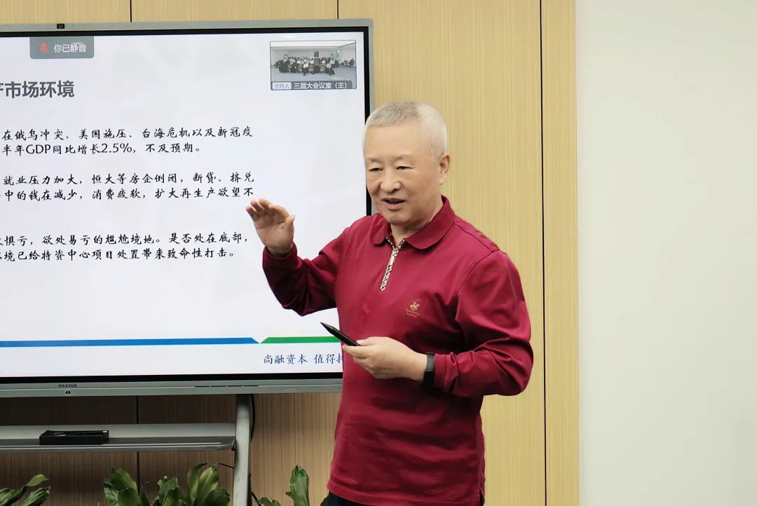 尚融資本資金財務部總經理陳潔首先對2022年度年中公司經營和融資情況進行了分析總結報告,尚融資本四位管理合伙人暨特殊資產中心業務負責人孫波、并購重組中心業務負責人李聚合、農業投資中心業務負責人徐德徽、戰略發展中心業務負責人藺泉長先后對各自中心上半年度業務情況進行了總結匯報。