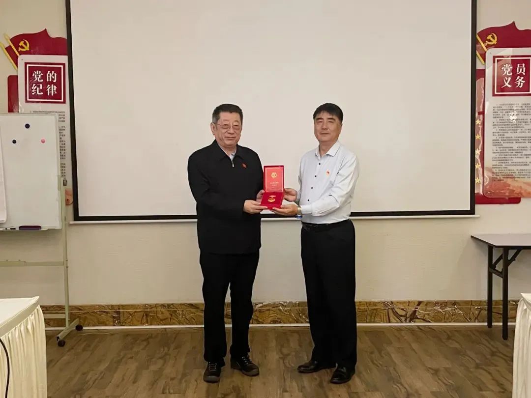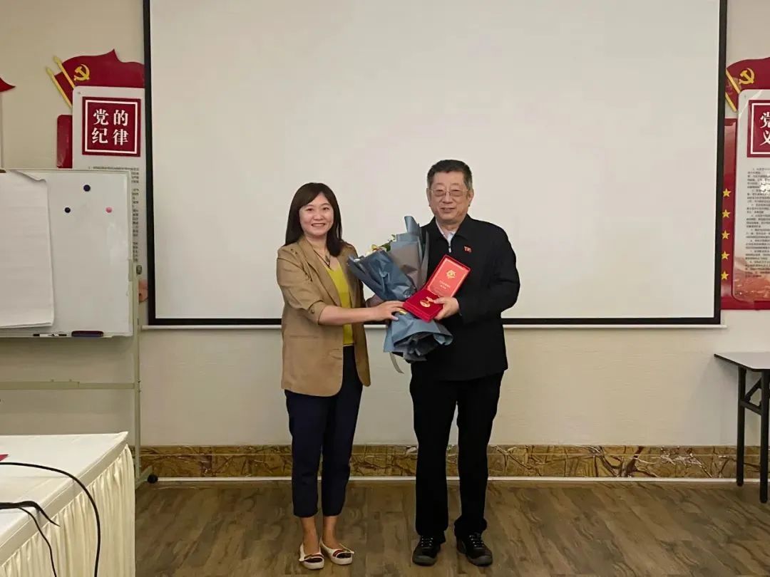 隨后,大家來到美麗的長城桑干酒莊,共同見證全聯并購公會顧問、尚融資本黨支部書記劉紅路同志“光榮在黨五十年”的光輝時刻。公會黨委副書記、秘書處黨支部書記邵逸為劉紅路同志頒發“光榮在黨五十年”紀念章。秘書處黨支部黨員、副秘書長常芳向劉紅路同志獻花。劉紅路同志與大家分享了自己入黨五十年來的心路歷程,用他信黨、愛黨,一生跟黨走、畢生分黨憂的躬身實踐為大家上了一堂生動的黨課。