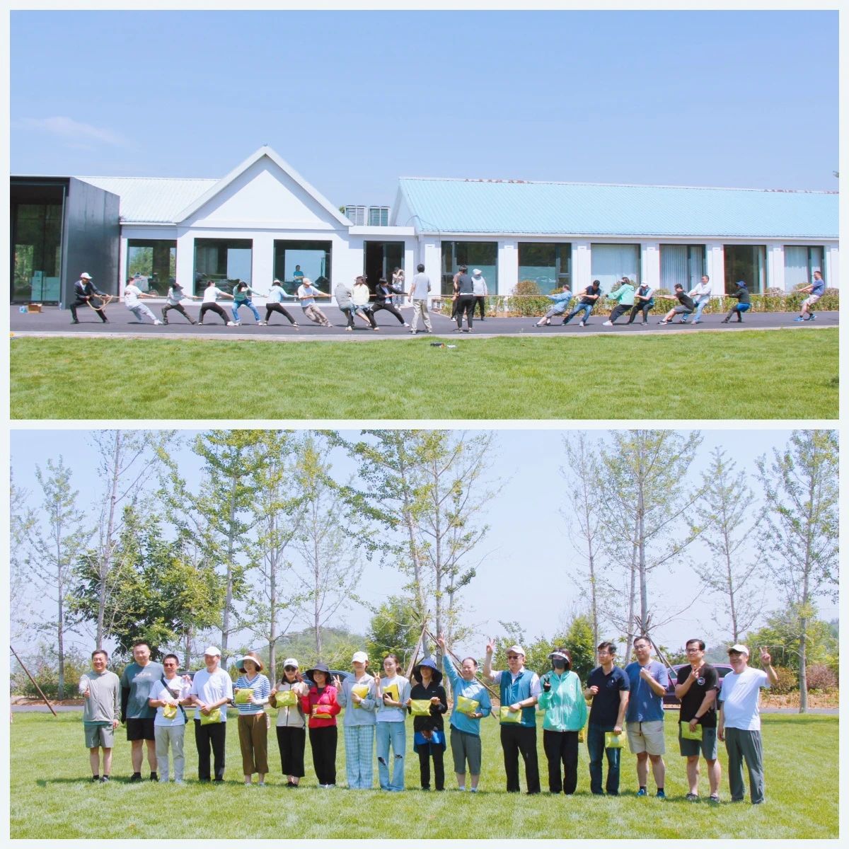 大約10點(diǎn),我們到達(dá)了此行目的地:蜜水櫻桃園。第一項(xiàng)活動(dòng),在人力資源部和行政管理部的組織下,開(kāi)展了4個(gè)有趣的團(tuán)隊(duì)拓展游戲,各隊(duì)成員積極商討戰(zhàn)術(shù),分工協(xié)作緊密配合,爭(zhēng)分奪秒,最后在決勝游戲“拔河比賽”中角逐出此次拓展的兩名獲勝隊(duì)伍,并由尉總和邵書(shū)記為大家頒發(fā)了紀(jì)念獎(jiǎng)品。